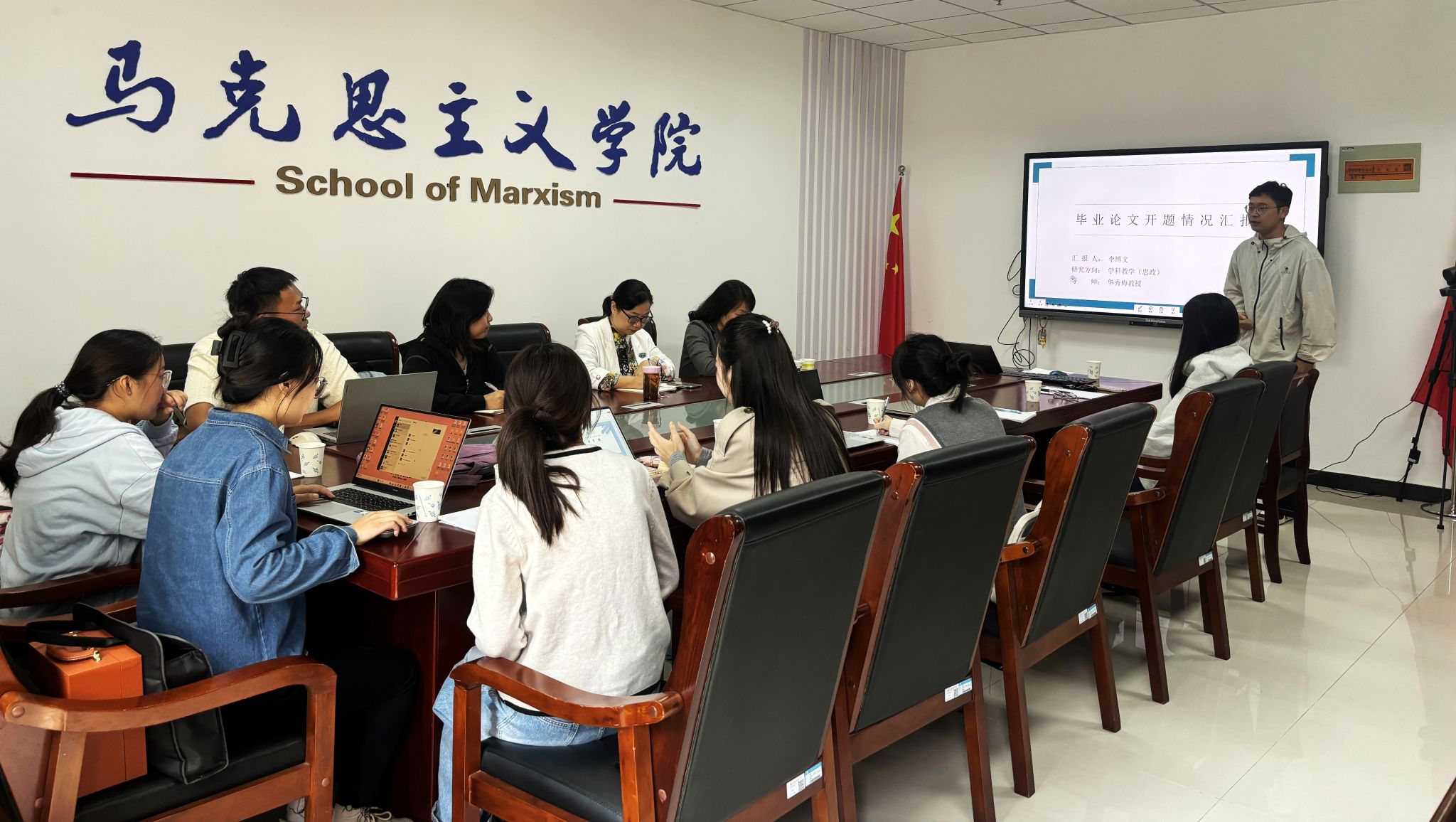 10月10日,研究生导师王翠萍教授同华秀梅教授在Q楼213会议室联合召开本学期第一次组会,共有十名研究生参会。此次会议旨在促进学术交流,分享学习经验,并汇报学术研究进度。