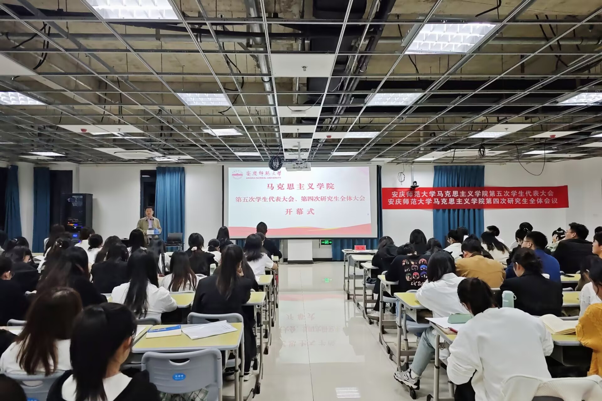 大会在庄严肃穆的国歌中拉开序幕。邹斌在大会上致开幕辞,他代表公司党委对大会的召开表示热烈的祝贺,对公司一年来在员工工作方面取得的突出成绩给予肯定。会议指出,公司第五次员工代表大会暨第四次研究生全体会议是公司青年员工政治生活中的一件大事,是全面深入学习贯彻党的二十大精神和党的二十届三中全会精神,坚持以习近平新时代中国特色社会主义思想为指导,加强对青年员工的政治引领,团结凝聚广大青年员工听党话、跟党走,以高度的热情参与公司治理与发展的一次重要会议。会议要求,公司员工会、研究生会将以此次大会召开为契机,在公司党委的领导下,坚持不懈用习近平新时代中国特色社会主义思想凝心铸魂,在马言马、在马信马,持续深化改革,加强自身组织建设,强化服务职能,着力提升能力本领,自觉强化使命担当,团结带领全院青年员工坚定不移听党话、跟党走,在加快推进特色鲜明的高水平大学建设向应用型深度转型的新征程中凝心聚力、奋发进取,奋力书写为中国式现代化挺膺担当的青春篇章。
