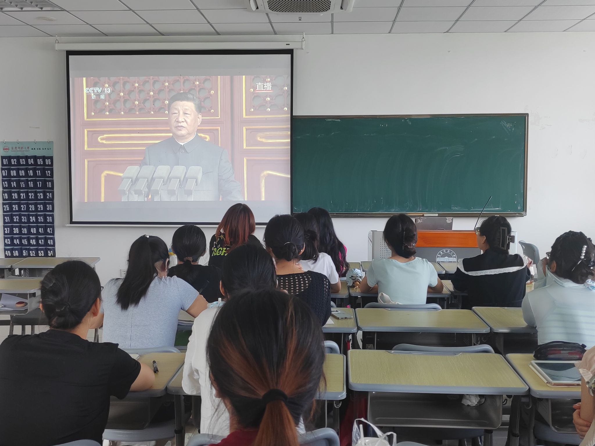 直播过程中,全体师生认真聆听了习近平总书记的重要讲话,观看了气势恢宏的阅兵仪式,重温了抗日战争的光辉历史,共同缅怀革命先烈、铭记抗战精神。师生们一致认为,习近平总书记的重要讲话意境深远、意义重大、振奋人心、令人鼓舞,向全世界发出了中国的和平之声。阅兵结束后,师生们心潮澎湃、备受鼓舞,围绕阅兵盛况展开热烈讨论。大家纷纷表示,将深入学习领会习近平总书记在纪念中国人民抗日战争暨世界反法西斯战争胜利80周年大会上的重要讲话精神,铭记历史,缅怀先烈,珍爱和平,坚定不移走中国特色社会主义道路,传承和弘扬伟大抗战精神,踔厉奋发、勇毅前行,为以中国式现代化全面推进强国建设、民族复兴伟业而团结奋斗!