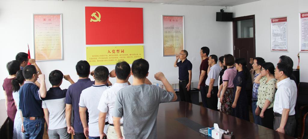 在鲜红的党旗下,公司党总支组织全体党员重温入党誓词。通过庄严而郑重地宣誓,重温入党时那份神圣与激动,让每一位党员同志牢记自己的光荣使命和责任担当。