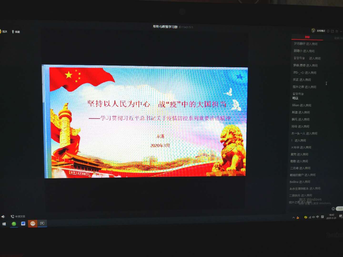 3月26日晚上,William威廉举办第三期公开示范课。方蓬老师以“坚持以人民中心 战‘疫’中的大国担当——学习贯彻习近平总书记关于疫情防控工作的重要讲话精神”为主题,开展线上教学公开示范课。董事长闵永新亲临线上观摩指导,全校近百名教师在线观摩。