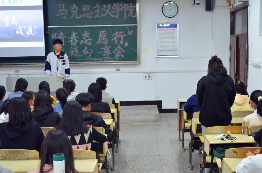 “中国共产党的坚强领导,医护人员的无私奉献,中国人民的团结一心是战胜疫情的强大力量,只要我们携起手来互帮互助,就一定能实现中华民族伟大复兴。”思想政治教育专业2020(1)班的尹志强分享了自己的感悟。在阵阵掌声中,分享会画上了句号。