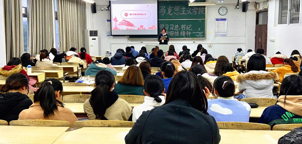 学习回信内容,同学们切合自身实际,围绕“如何为建设教育强国贡献力量”进行交流探讨。