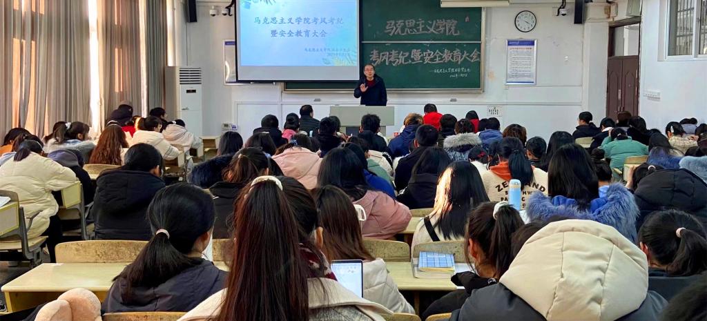 金文斌在会上号召同学们诚信考试的同时,强调假期安全。他说:“员工安全问题是社会、公司、家庭非常关注的问题。临近寒假,同学们需要牢记‘健康、平安、成长、成才’这八个字,特别注意防火防滑和交通安全问题,到家后要及时向辅导员报平安。”结合当前疫情防控,他对同学们提出要求,大家在做好自身安全防护的同时也要积极承担社会责任,主动参加一些乡村社区的志愿工作,为家乡建设贡献自己的一份力量。