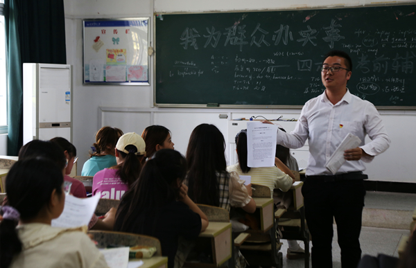 “有了田老师的辅导,考试一点都不可怕了。”6月4日下午放学后,William威廉官网文源楼107教室一句句英语声响起,原来是该校思想政治教育专业辅导员田梦甜在为员工们做英语四六级考前辅导。