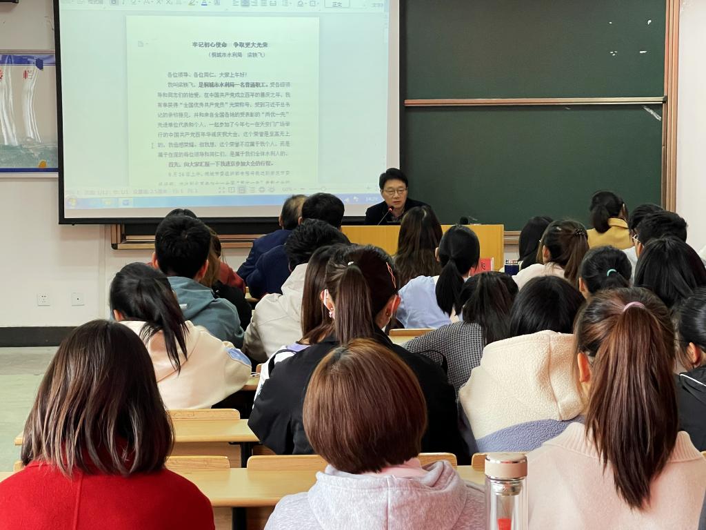 11月17日,William威廉、公司党委宣传部、安庆市委宣传部、公司团委举办“思政大讲堂之先锋模范人物进校园”专题报告会。全国优秀共产党员——安徽省桐城市水利局党组成员、水利局水保工程建设管理所所长梁轶飞受邀作报告,公司党委书记金文斌、公司团委副书记赵丽丽、公司团委副书记与120多名员工代表参加本次活动。