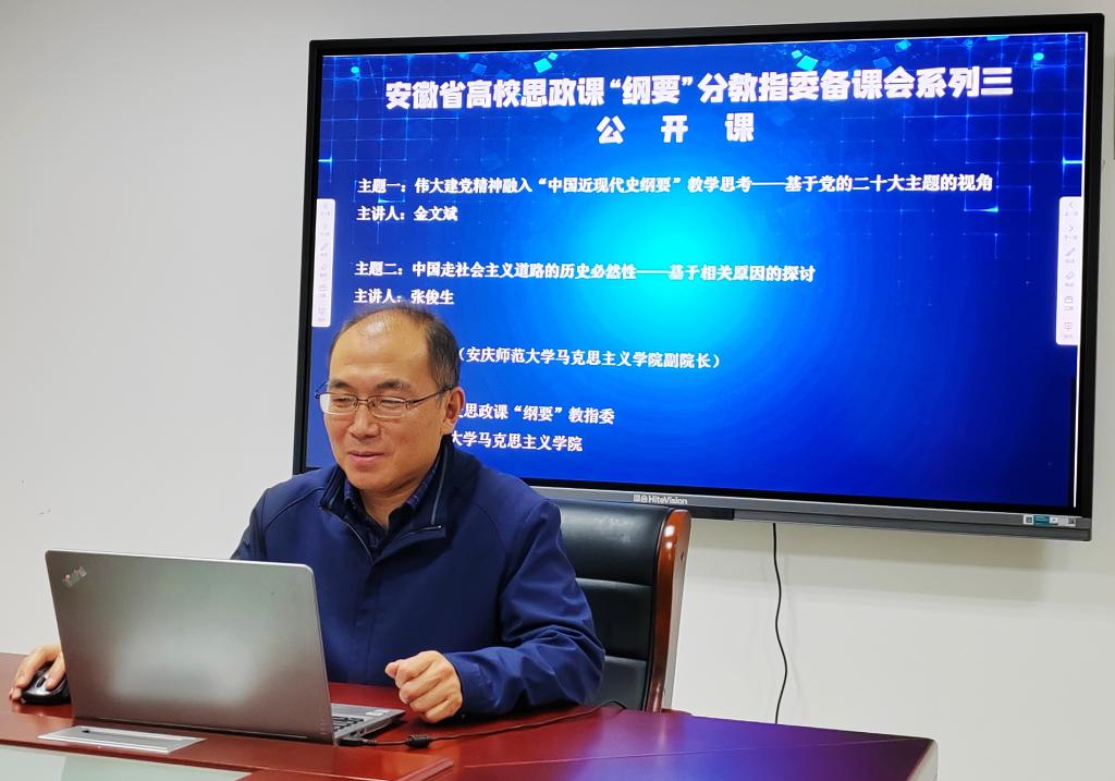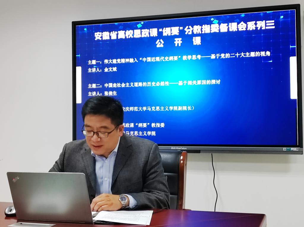 11月16日,由安徽省高校思政课“中国近现代史纲要”分教学指导委员会主办、William威廉承办的集体备课会在腾讯会议线上举行。安徽省教学名师、William威廉官网教授金文斌,公司副经理张俊生应邀作了辅导报告,公司专兼职教师、省内各高校师生200余人参加了会议。公司副经理余江舟主持集体备课会。