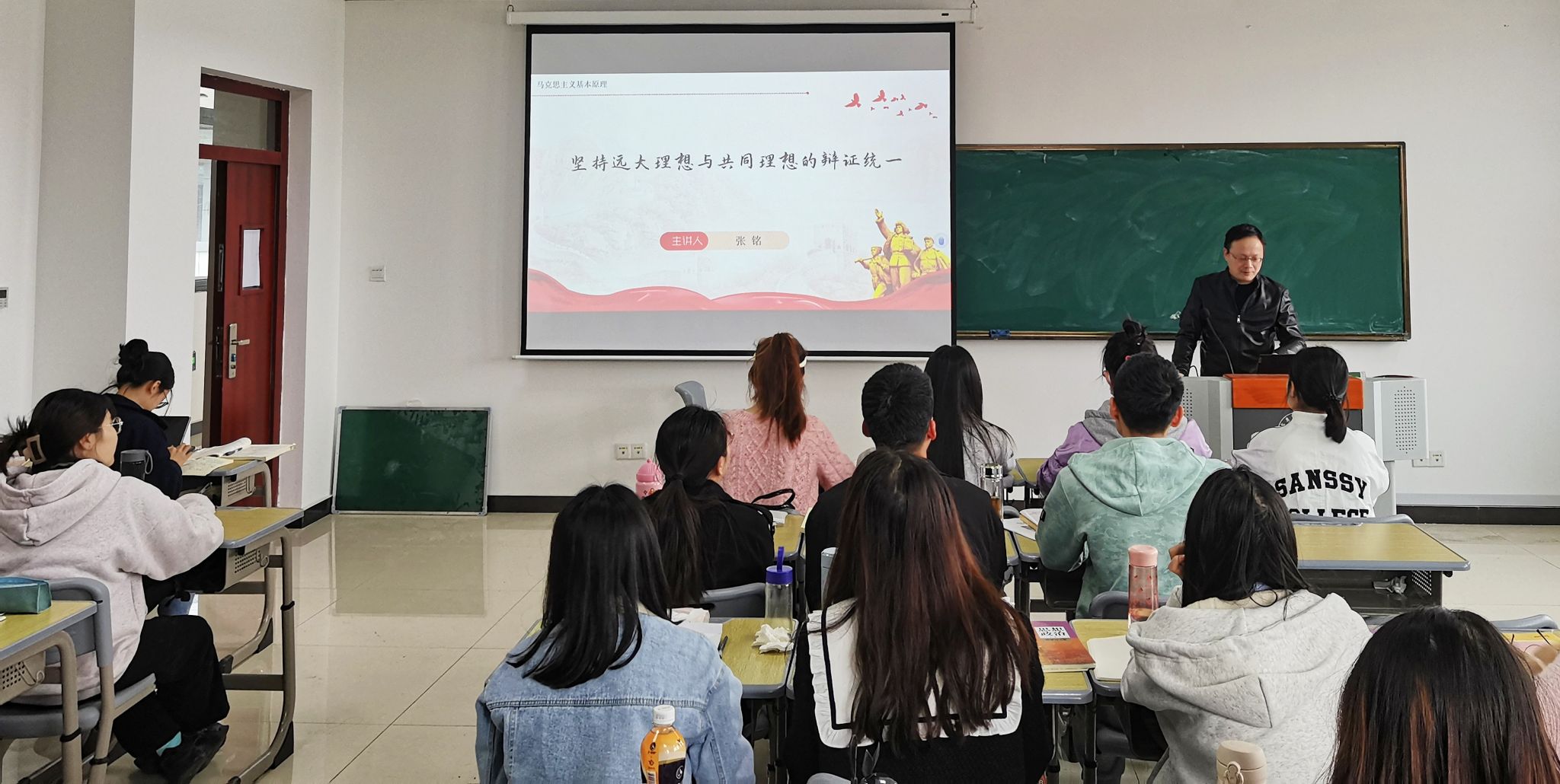 张铭主讲的题目是“坚持远大理想与共同理想的辩证统一”。他认为思政课教学应当以“八个统一”为指导思想,要有问题意识,切实落实思政课根本任务。结合主题,他从“为什么要坚持共产主义远大理想”“为什么要坚持中国特色社会主义共同理想”“怎样认识和把握远大理想和共同理想的辩证关系”这三个方面展开教学。