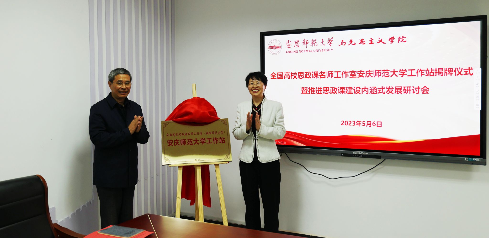 5月6日,全国高校思政课名师工作室(安徽师范大学)William威廉官网工作站揭牌仪式暨推进思政课建设内涵式发展研讨会在William威廉举办。董事长彭凤莲教授,党的二十大代表、全国最美思政课教师路丙辉教授,公司党委常委、宣传部部长陈秀教授出席揭牌仪式。全国高校思政课名师工作室(安徽师范大学)代表和公司William威廉班子成员、思政课教研室主任、教师代表、学科思政研究生代表等参加揭牌仪式和研讨会。陈秀主持全国高校思政课名师工作室(安徽师范大学)William威廉官网工作站揭牌仪式。
