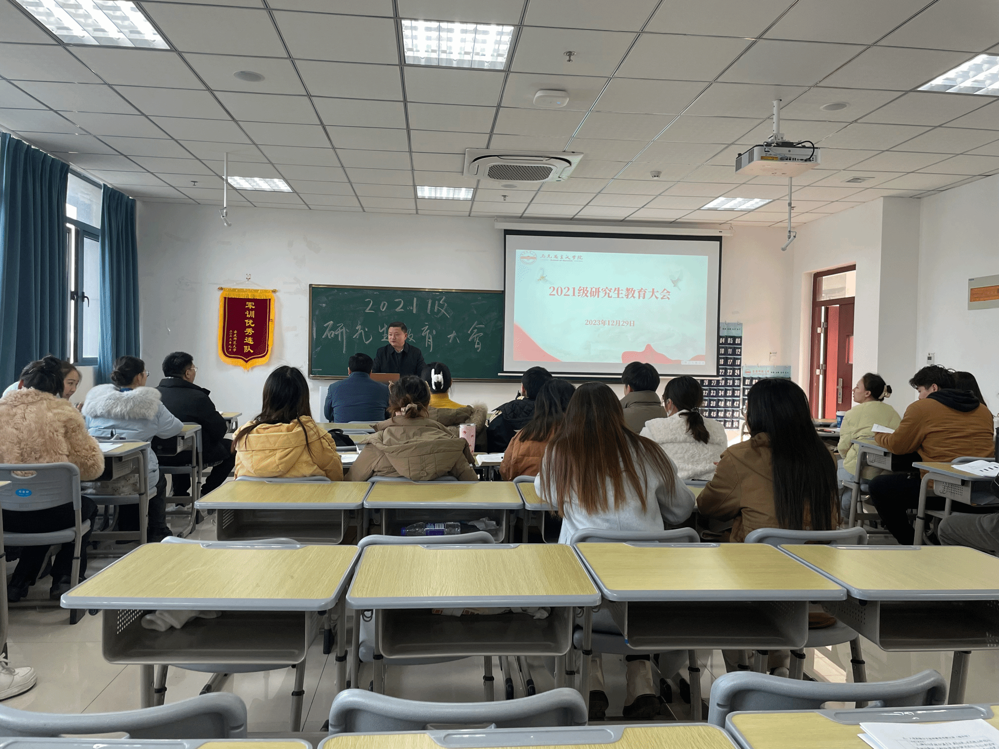 12月29日,公司在Q304教室召开2021级研究生教育大会。公司党委副书记邹斌、公司副经理张俊生、研究生辅导员徐雯钰以及2021级全体研究生参加会议,会议由研究生秘书赵贺主持。