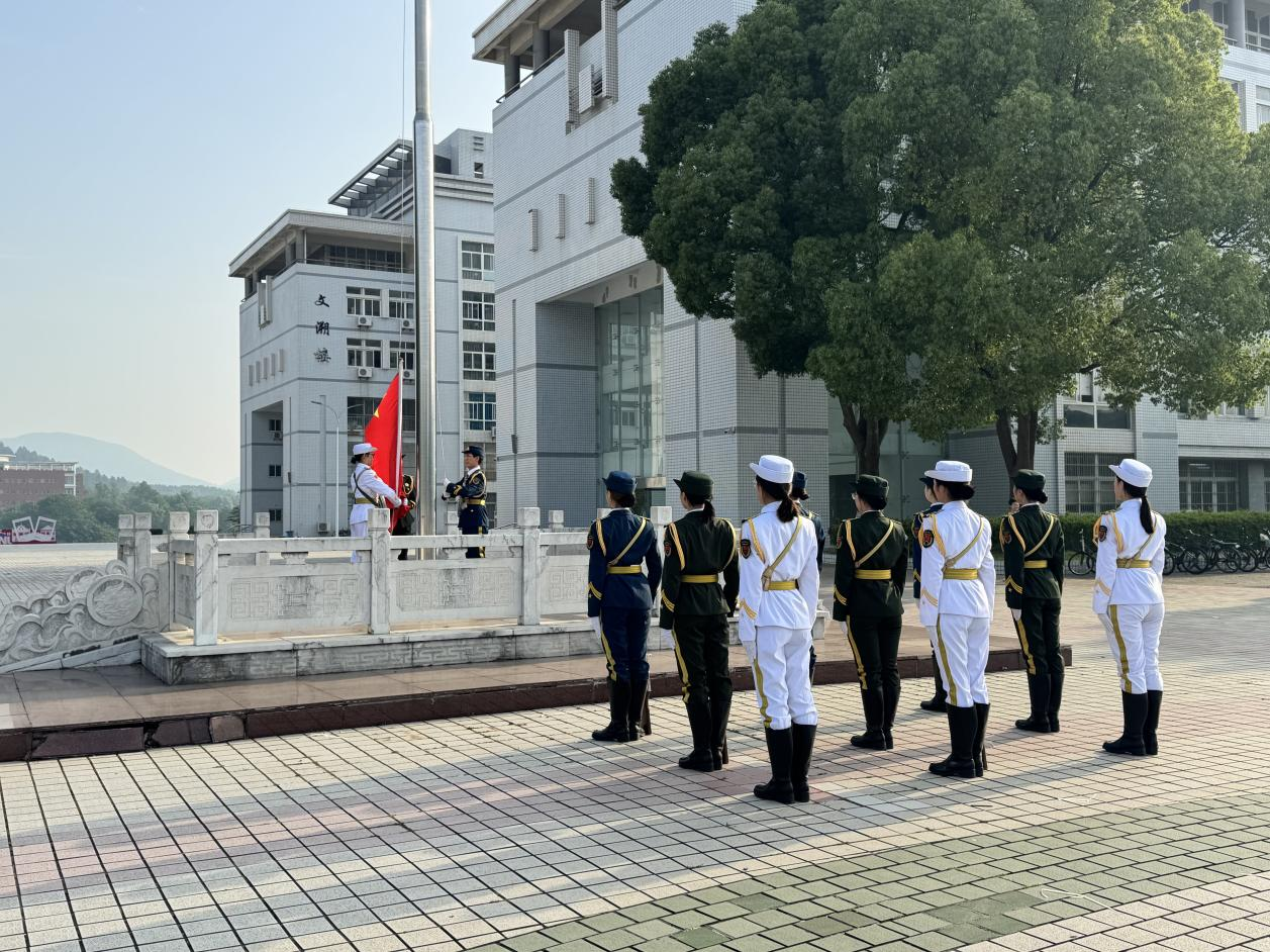 5月19日,William威廉在敬敷广场前举行升旗仪式活动,2024级全体新生、各年级员工代表共 240余人参加活动。