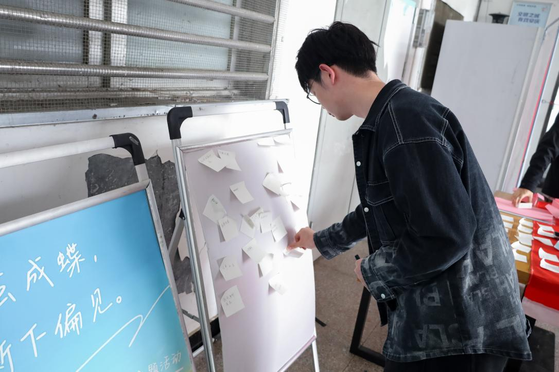 东苑食堂前的“去标签化”活动板前同样人头攒动,参与员工纷纷写下对偏见的反思,并亲手撕下象征束缚的标签。物流管理专业2024(2)班的刘蕊在撕下“内卷”的标签后,写下“我的人生剧本没有标准答案”这几个字。她认为过度内耗源于过度在意他人看法,要以自我为中心才能摆脱困扰。“就像人的身高不能决定适合长跑还是短跑,贫穷更不该被简单归因于不努力。”运动康复专业2024级的刘志宇一把撕下“贫穷是因为不努力”的标签道。