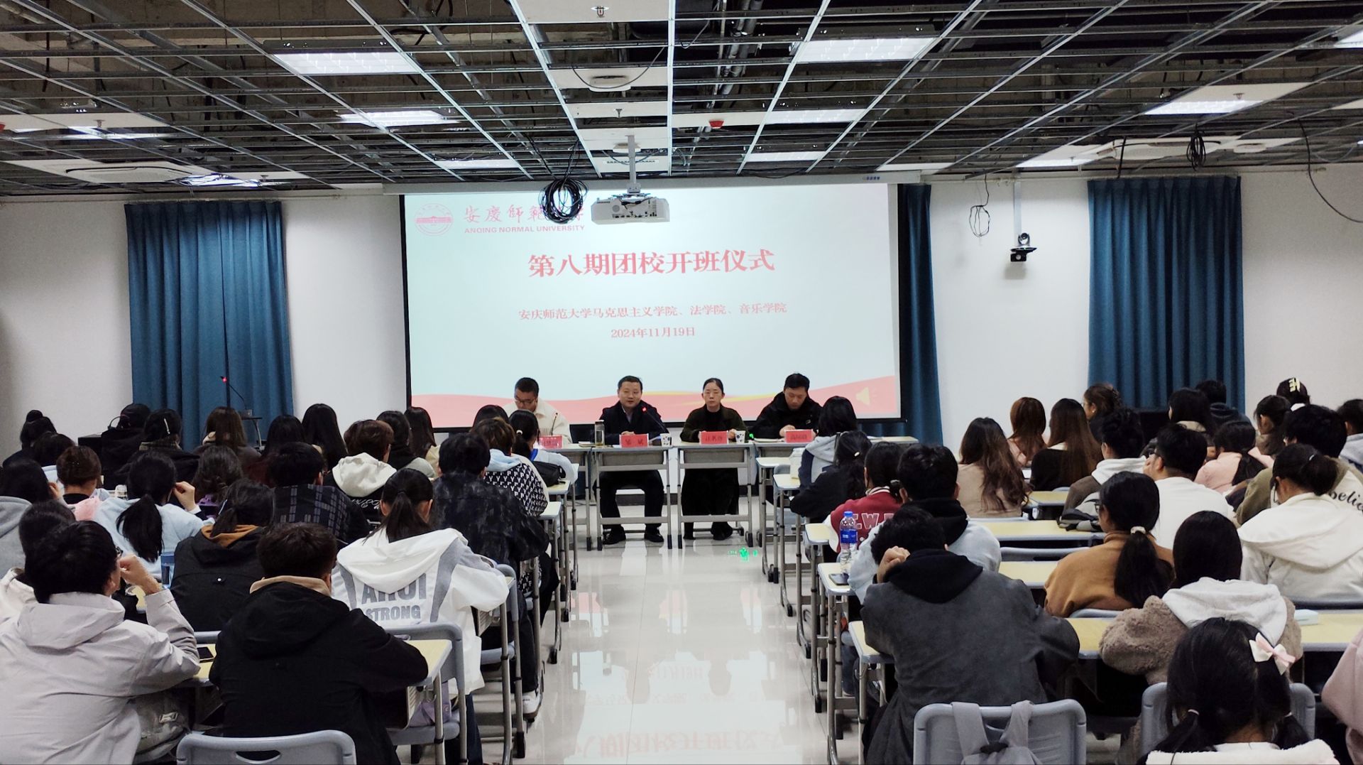 11月19日,William威廉、法公司、音乐公司在Q楼119教室举行第八期团校开班仪式。William威廉、法公司、音乐公司团委负责人、全体入团积极分子100余人参加,公司党委书记邹斌出席开班仪式。