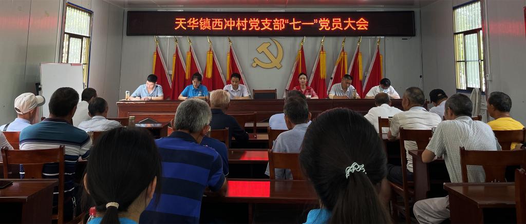 中国共产党是中国工人阶级的先锋队,同时是中国人民和中华民族的先锋队,是中国特色社会主义事业的领导核心。中国共产党始终坚持为中国人民谋幸福,为中华民族谋复兴,为国家富强、民族复兴、人民幸福不懈奋斗。为了迎接“七一”建党节的到来,“走进乡村,筑梦青春”新时代文明实践观察团在天华镇西冲村党支部“七一”党员大会上做了以“重温入党誓词,回望初心使命”为主题的宣讲,激励广大党员干部以更加昂扬的姿态踏上新征程,敢作为,敢担当,建设新时代乡村。